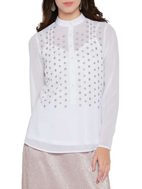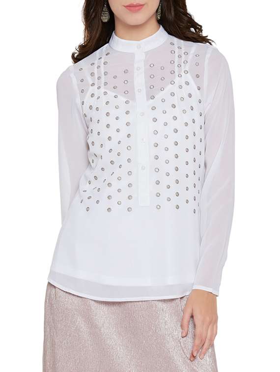 - » button detail embroidered top