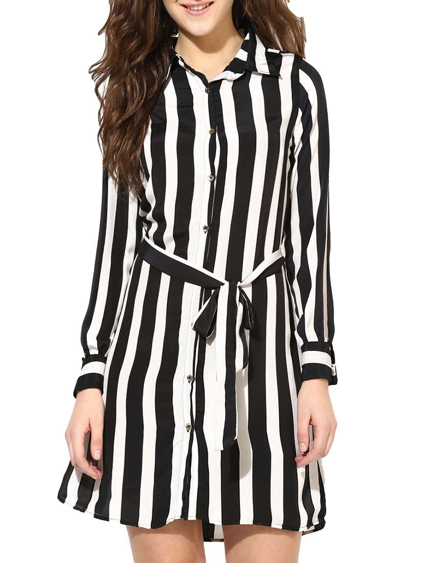 white solid collared striped a-line dress