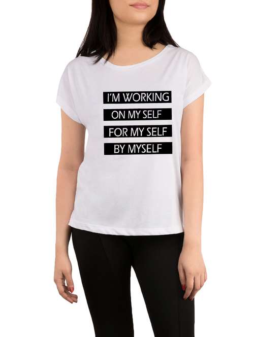 white printed regular tee