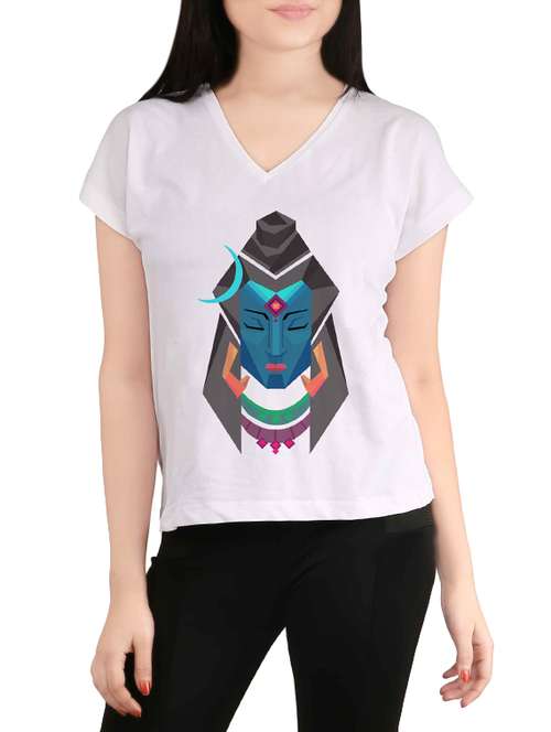 white printed casual tee