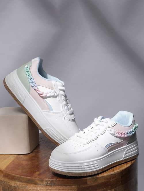 women solid white chain embellished lace-up sneaker - 20425618 -  Standard Image - 1 women solid white chain embellished lace-up sneaker - 20425618 -  Zoom Image - 1