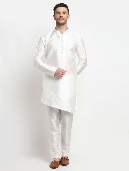 men solid asymmetric kurta pyjama ethnic wear set