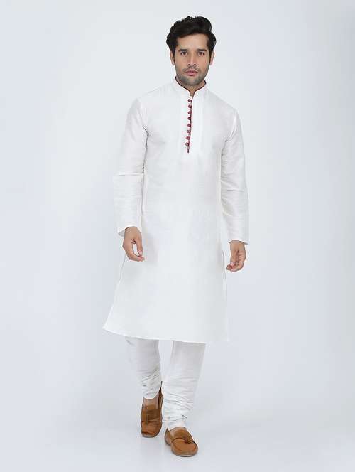 - » men solid mandarin neck kurta churidar ethnic wear set