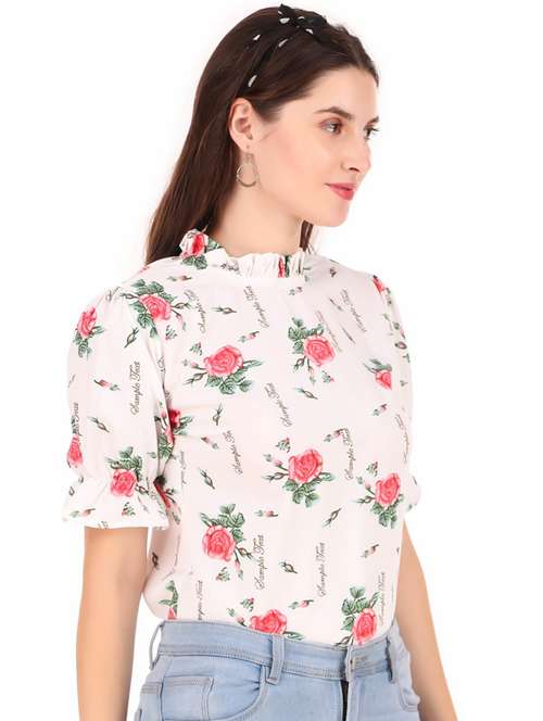- » women white floral printed casual top