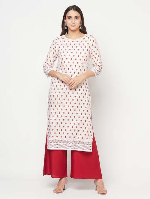 - Grab this beautiful kurta made up of rayon fabric featuring boat neck neck designs.