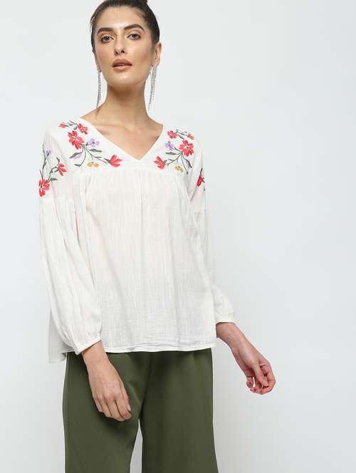 - » floral embroidered top
