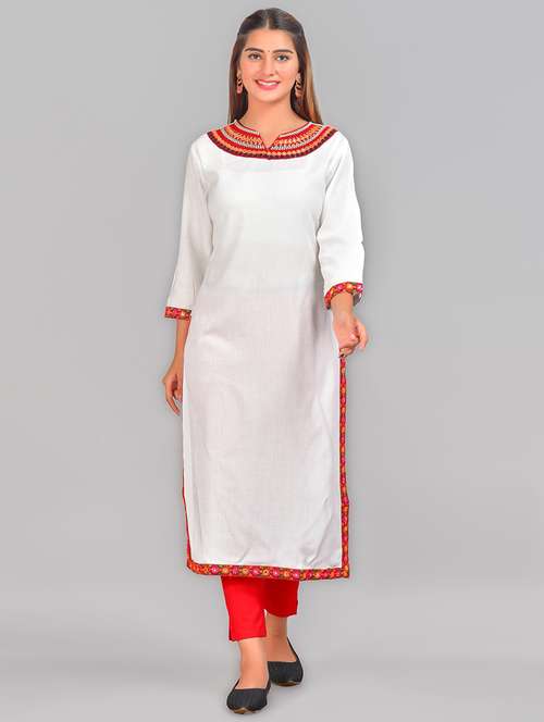 - Grab this beautiful kurta made up of rayon fabric featuring notch neck designs.