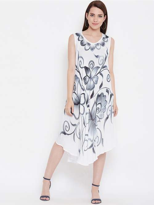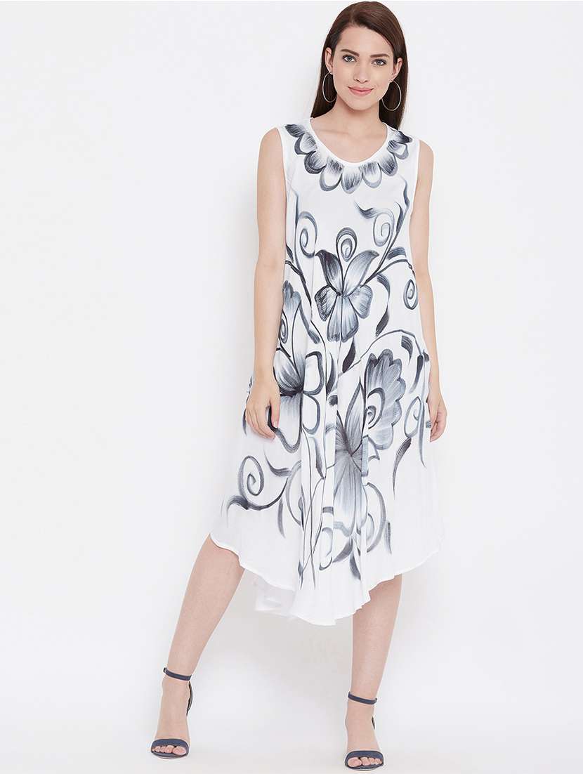 - » round neck floral asymmetric dress