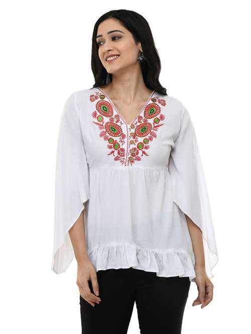 - Opt for this top made up of rayon material and get it in a varied neck design.