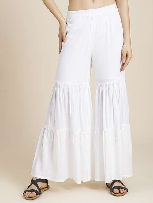 - Find a versatile collection of shararas in white colours and rayon fabric that not only gives an outstanding rich look but also ensures breathability and comfort.