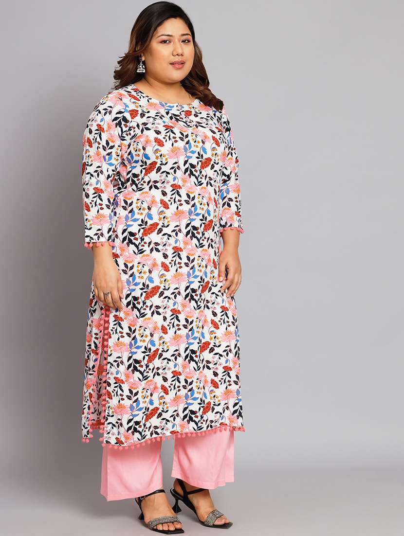 - » women white & pink printed kurta with palazzo