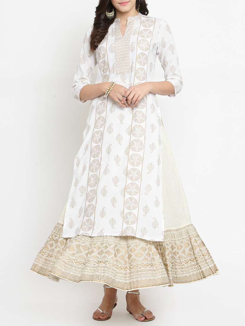 foil printed kurta skirt set