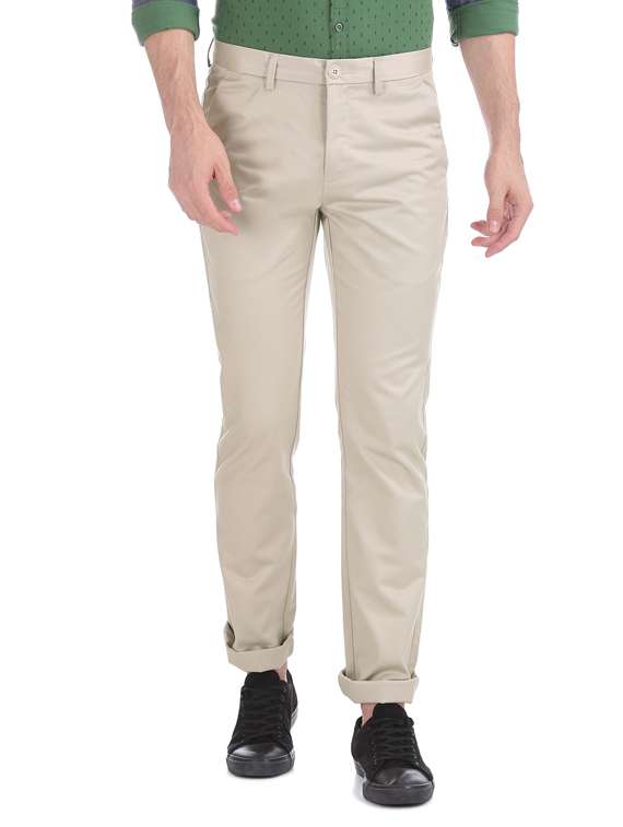 beige solid chinos