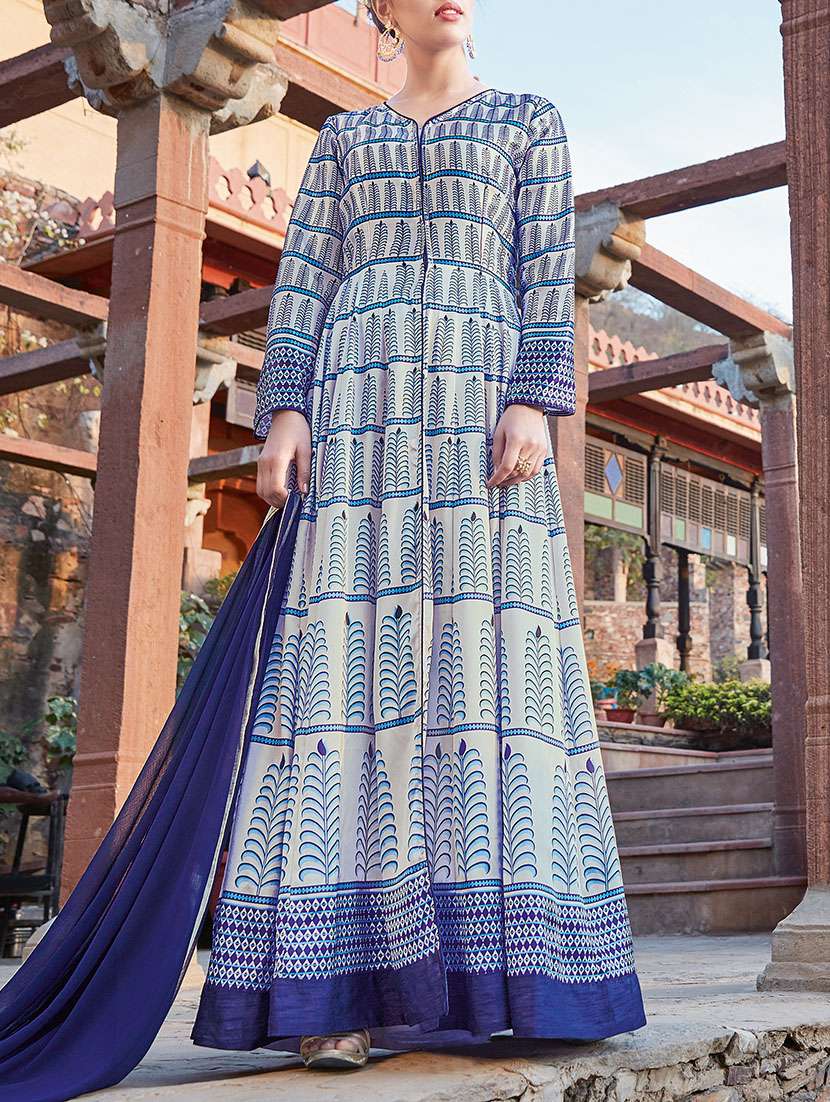 - Find versatile complete set of semi-stitched suits in trending designs in blue colors suitable for a number occasions.