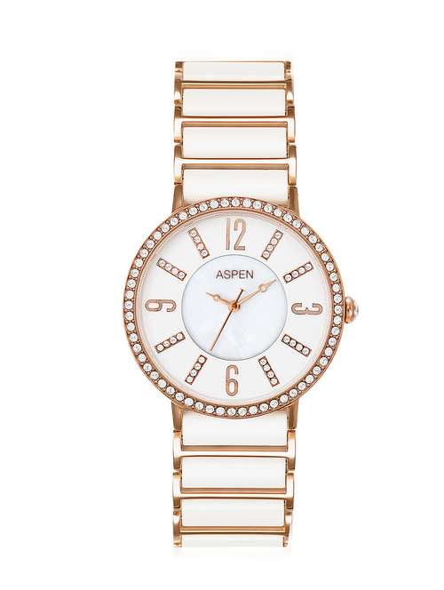 - » aspen ladies white color dial with mother of pearl ceramic collection watch for formal use