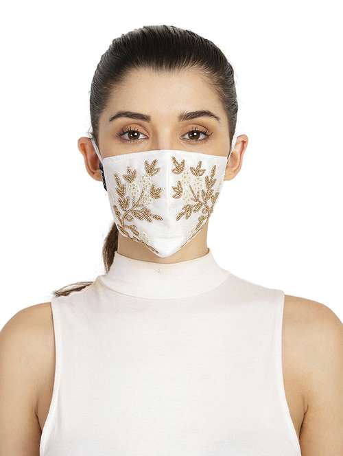 - » 3-ply white & gold art silk embellished fabric fashion mask