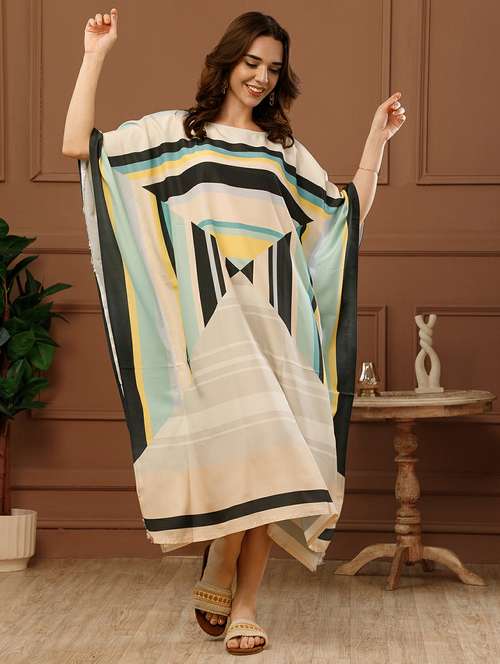 • Revamp your summer style with the latest trendy prints of kaftans available in various silhouettes and hues starting at ₹1720 prices.