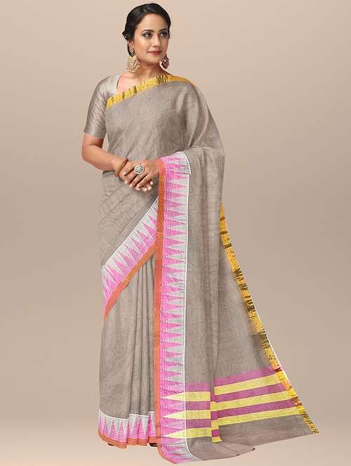 - » women's chevron grey colored saree with blouse