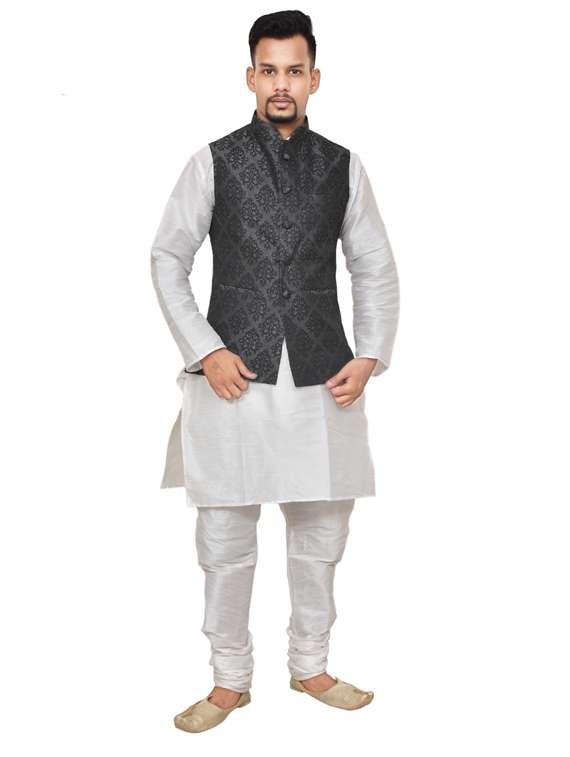 - » white silk blend kurta pyjama with jacket ethnic wear set