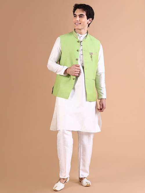 - » men mandarin neck kurta pyjama with jacket ethnic wear set