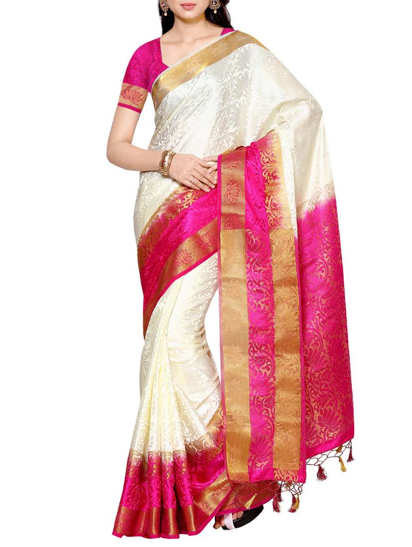 - » white silk woven saree