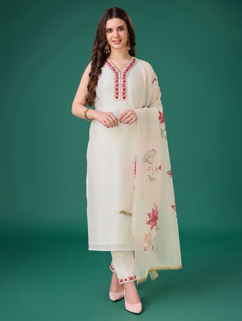 - Find gorgeous sets of ethnic wears in trending designs in white colors suitable for festive wear of occasions.
