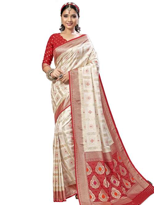 white silk patola saree with blouse