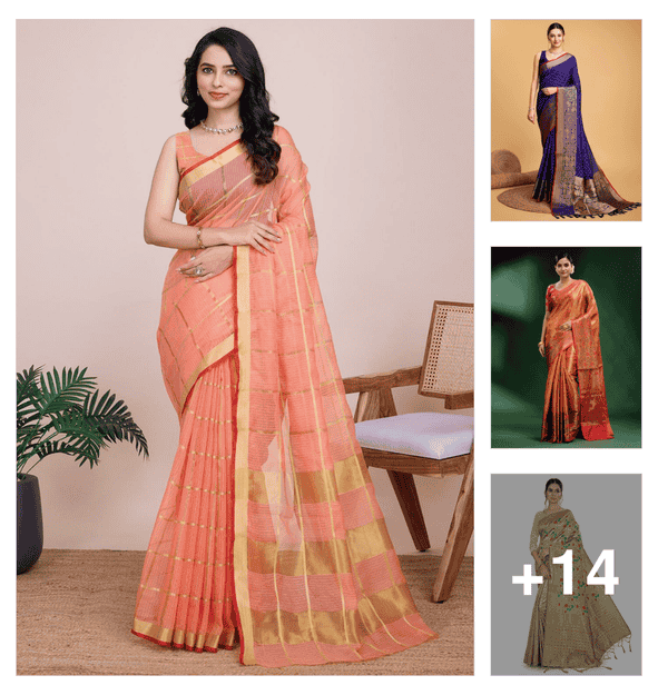 women checkered bordered saree with blouse