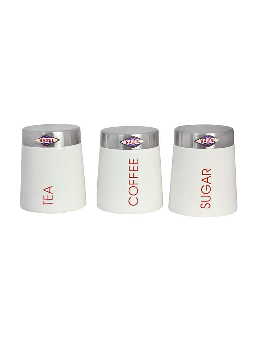 - » hazel tea coffee sugar containers,700 ml, mild steel,sober cream 3 pc set