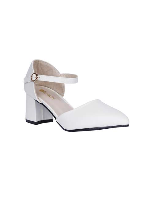 white faux leather ankle strap sandals