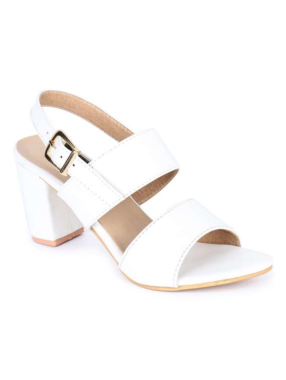 white synthetic ankle strap sandals