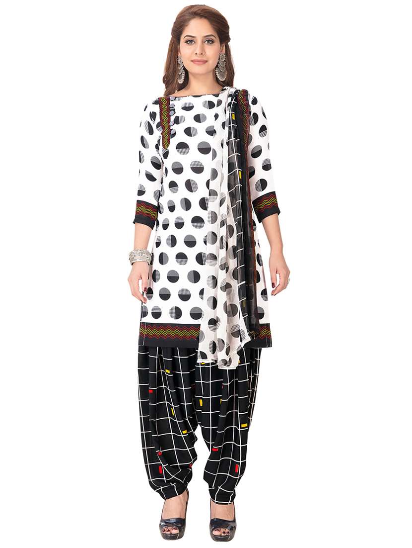 - » white printed unstitched salwar suit set