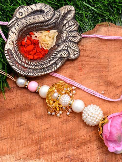 Designer Peral Red Rakhi Combo set For Bhaiya Bhabhi