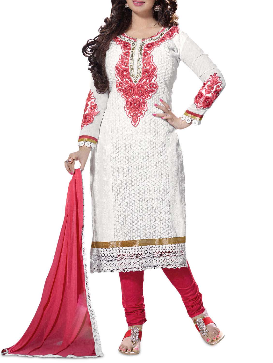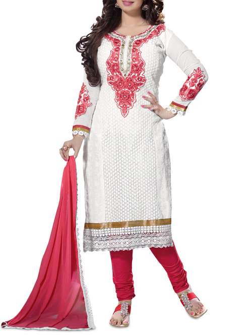 white unstitched embroidered suit set