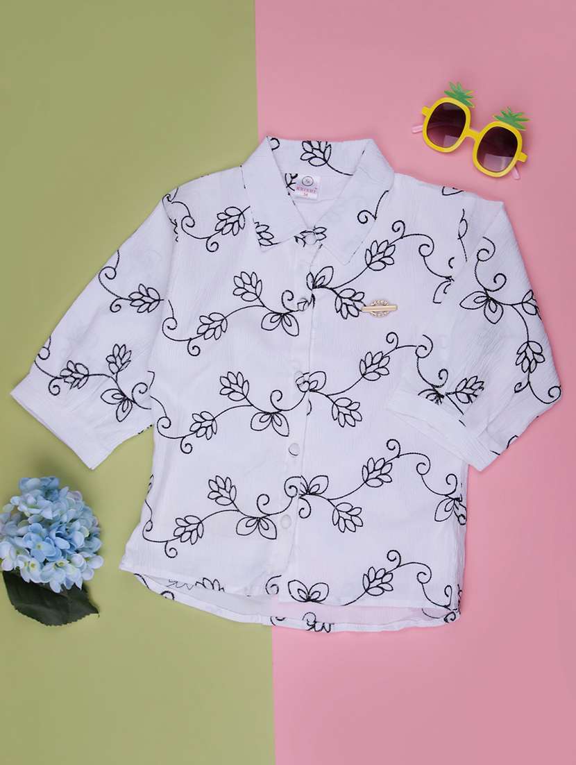girls embroidered three quarter sleeve top - 21987720 -  Standard Image - 1 girls embroidered three quarter sleeve top - 21987720 -  Zoom Image - 1