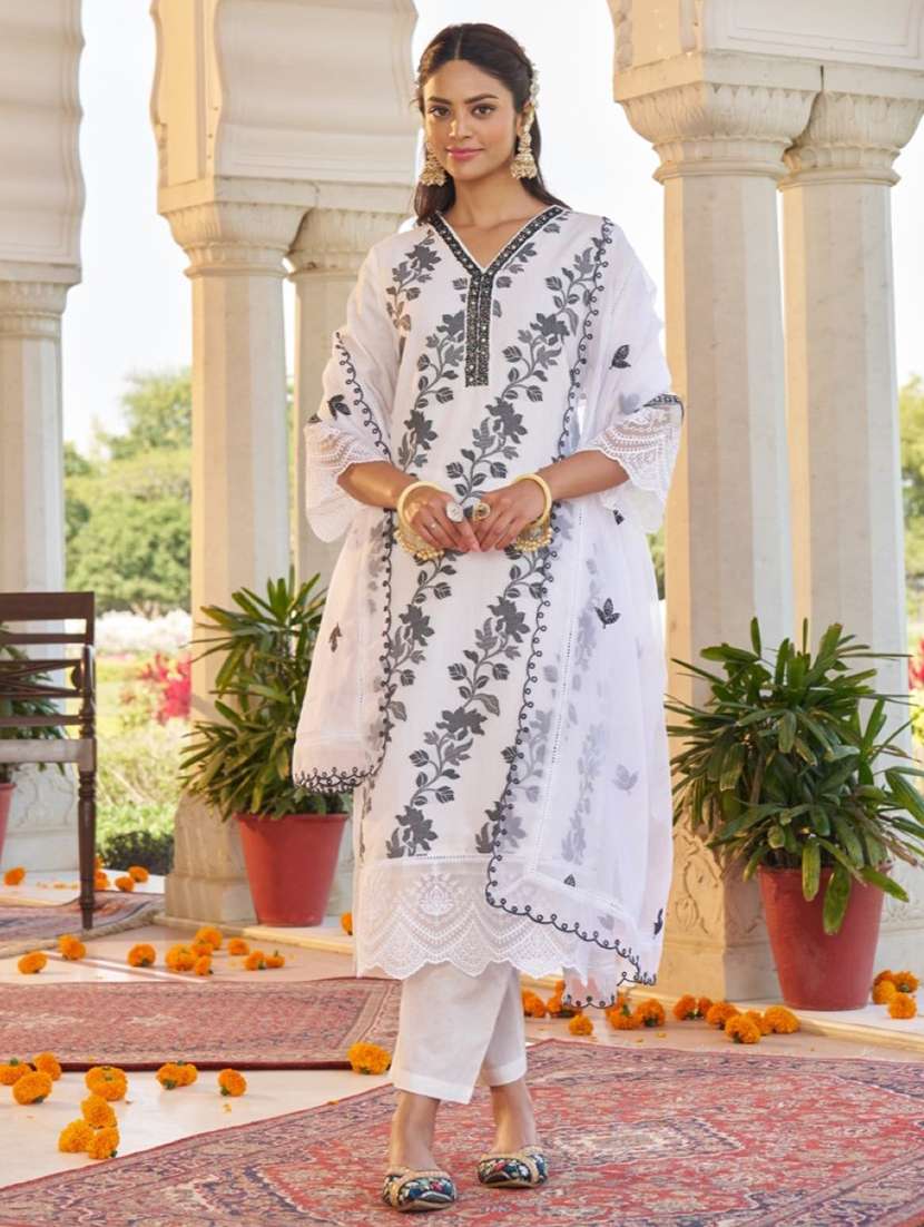 women three quarter sleeve kurta pant with dupatta set