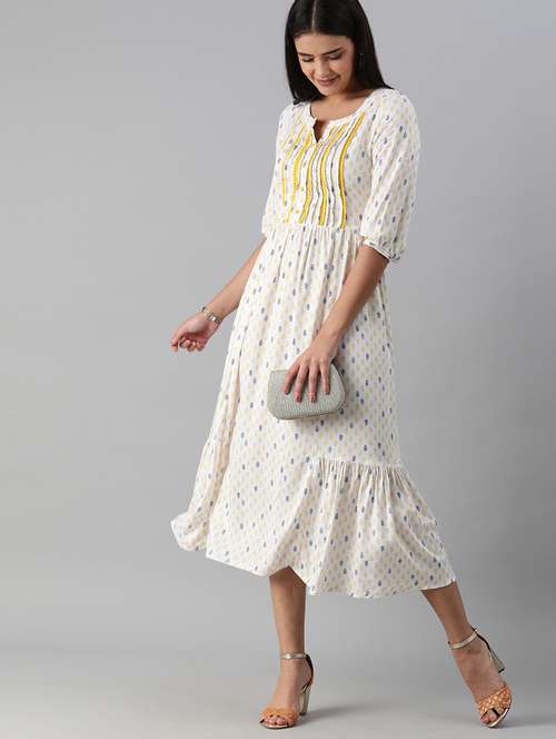 - » three quarter sleeved printed fit & flare dress