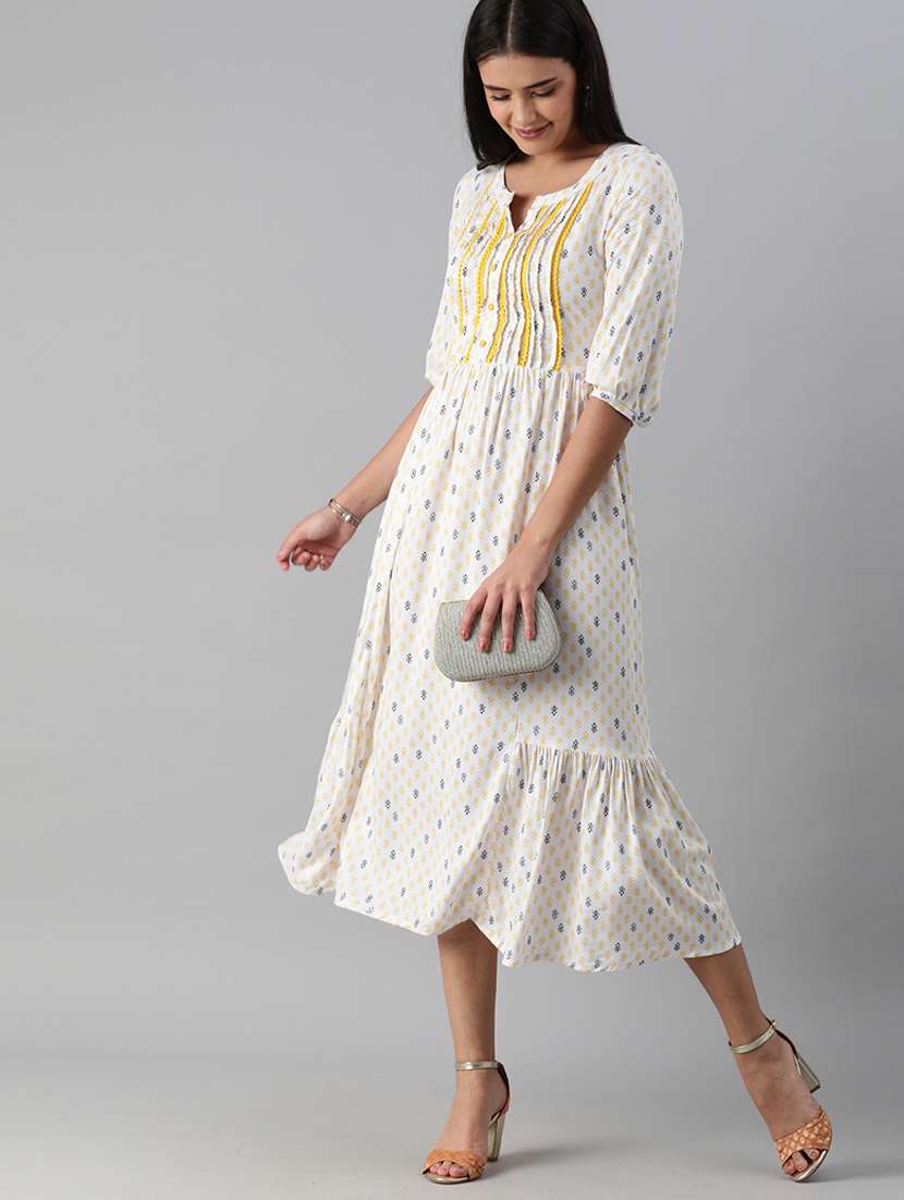 three quarter sleeved printed fit & flare dress