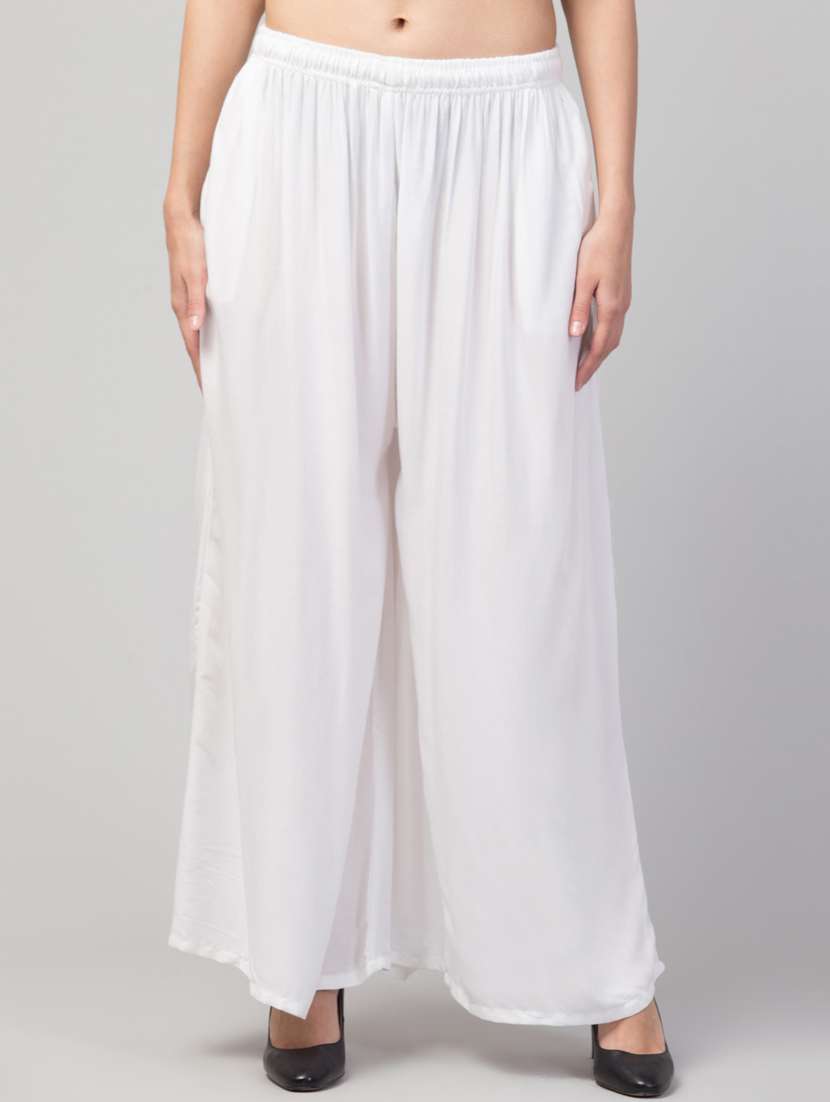 women solid mid rise flared palazzo