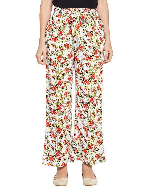 - » self tie waist floral wide leg trouser