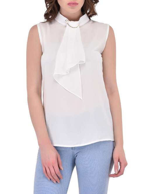 - » women's straight tie-up neck top