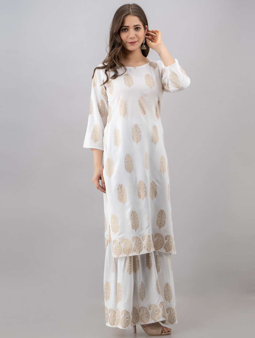 white colored kurta sharara set