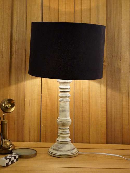 vintage  white mango wood table lamp with drum shade - 11190960 - Very Small Image - 1
