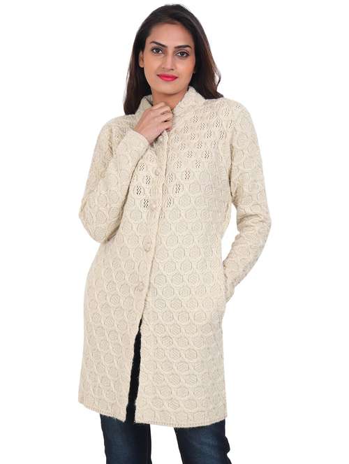 - » women self design woollen cardigan
