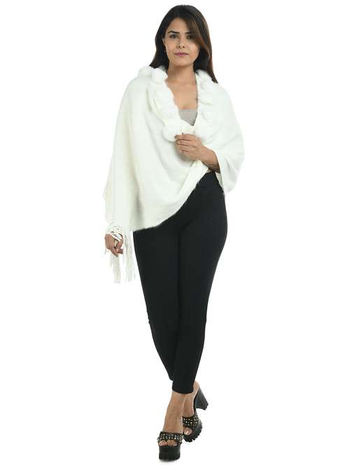 - » women self design white wool pashmina shawl