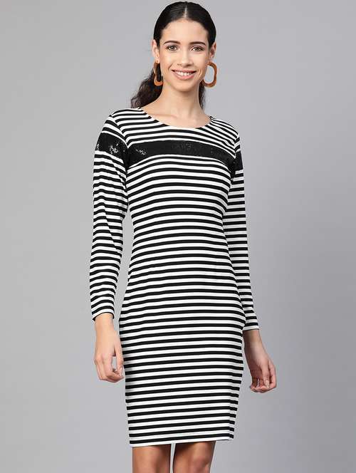 Zima Leto Women's Stripe Dress With Sequin Patch