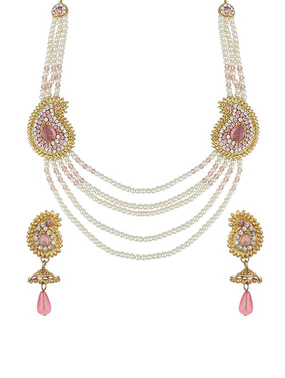 Jewels Guru Necklace set. This Jewellery Set Crafted with Cubic Zerconia, Zercon & Pearl Stones.