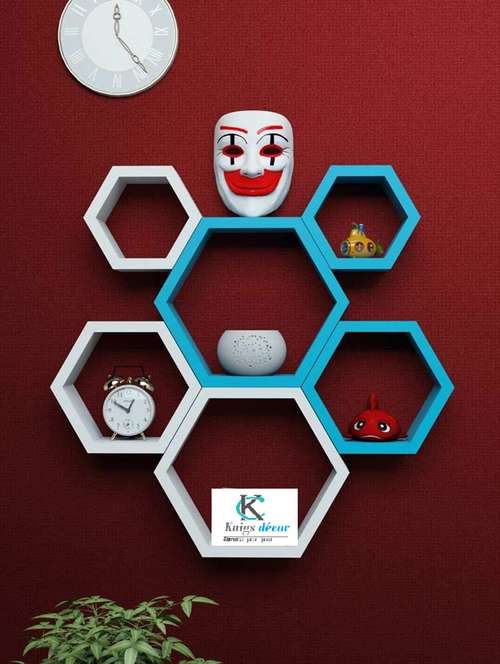 hexagon shape storage wall shelves set-6 - white - blue