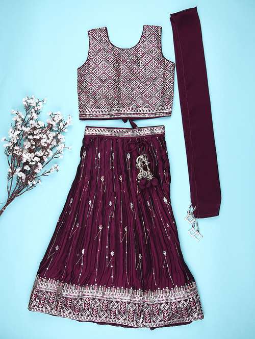 - » girls embroidered sleeveless lehenga and choli with dupatta