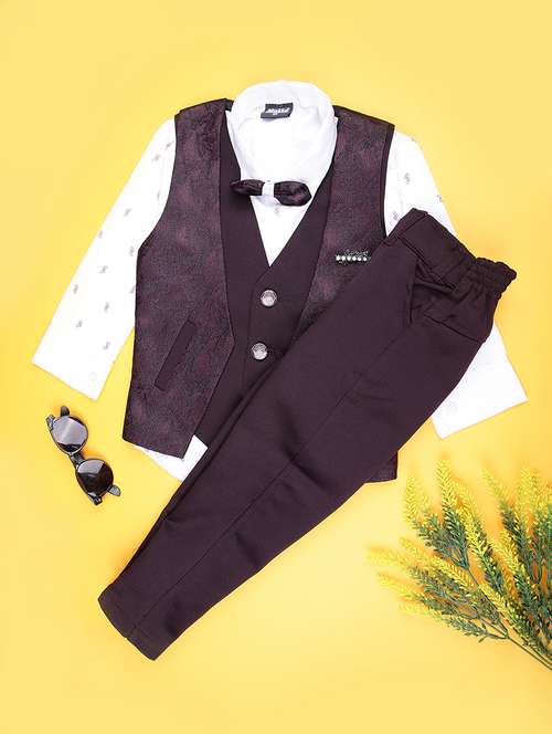 boys self design trouser & shirt with waist coat set